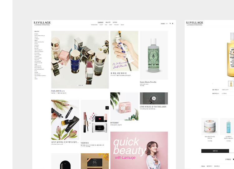 글로벌 패션, 뷰티, 리빙의 40여개 브랜드를 통합한 신세계인터내셔날 프리미엄 온라인 스토어 S.I.VILLAGE 를 구축하였습니다.